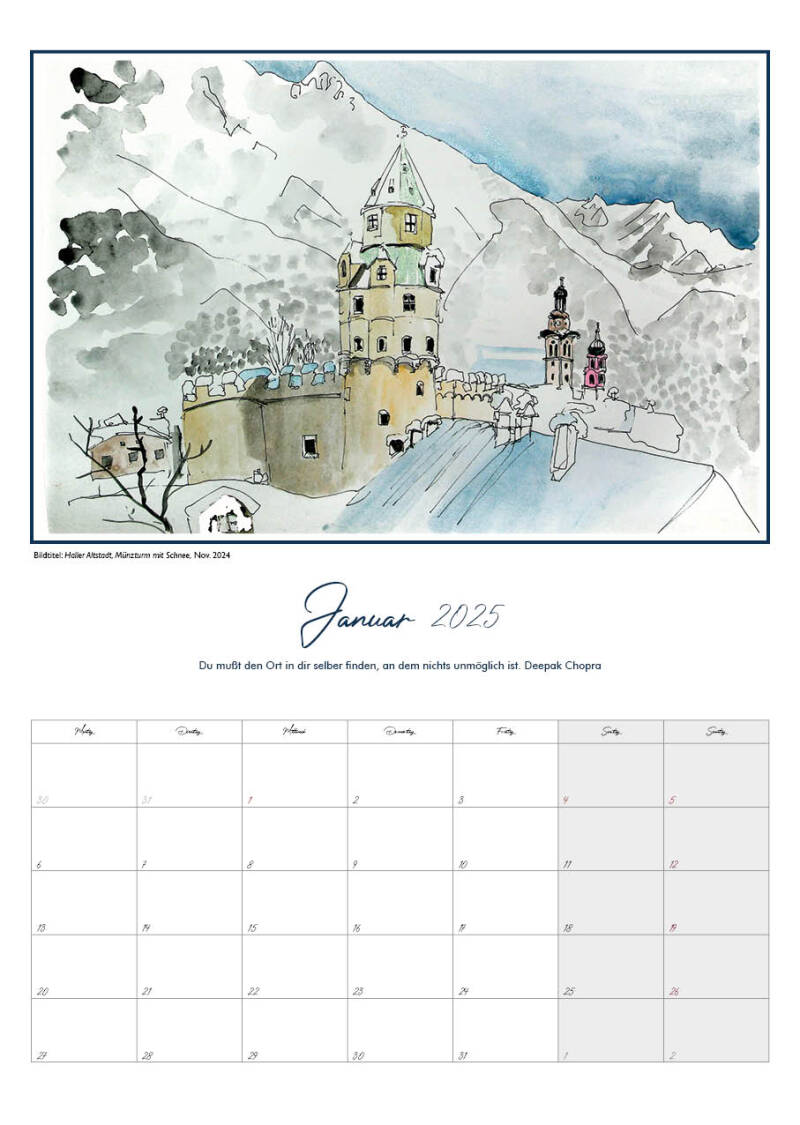 Tauchen Sie ein in die Welt der Aquarellbilder und organisieren Sie Ihr Jahr mit Stil. Jeder Kalender ist ein Unikat und ein Blickfang in jedem Raum.